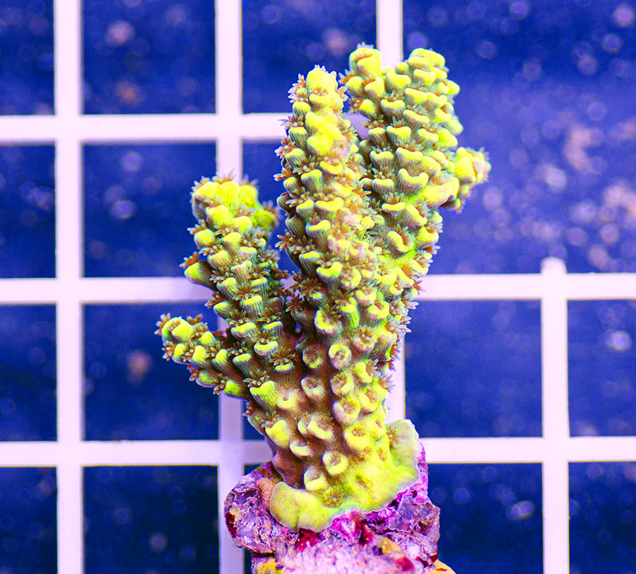 The holy grail of corals! This genus has some of the most demanding(both lighting and flow) species available in the trade. Water quality must be regularly tested and adjusted to make sure that these corals thrive. In a good environment, these corals can put on an inch or more of growth a month!